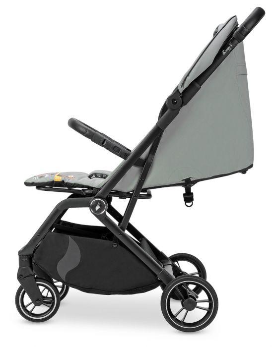 The Osann Boogy 2 is a compact, ultra-light stroller built for easy everyday use. It folds in one movement into a neat, boot-friendly size, while the drawstring backrest reclines smoothly to a fully flat position for naps on the go. Suspension wheels and large rear wheels help keep the ride comfortable, and reflective details improve visibility in low light. The adjustable hood includes UPF 50+ sun protection, and a raincover is included for changeable weather