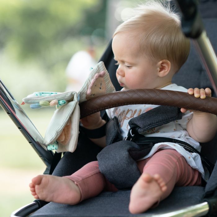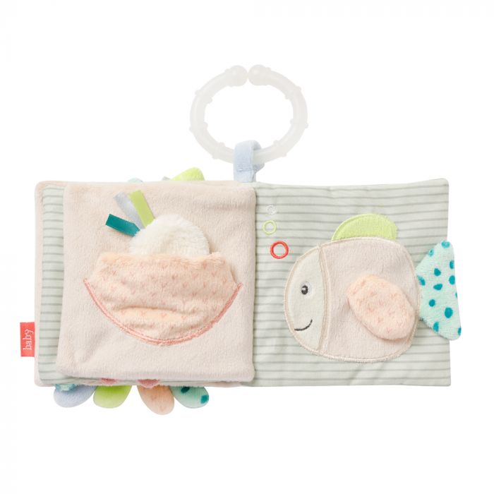 The octopus soft book invites your baby to discover the magical underwater world of the children of the sea. Octopus, seahorse, and fish provide a lot of fun while browsing and exploring 8 exciting pages. The squeak, crinkly paper & mirror offer lots of and is a great toy for developing visual and sensory skills . The C-ring allows easy attachment to the pushchair, pram, crib or car seat. For great playing fun – whether at home or on the go!