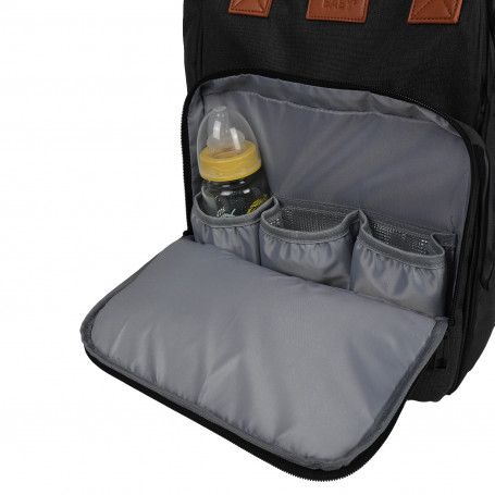 Thanks to its six openings and multiple compartments, you’ll never waste time searching for wipes, bottles, or a change of clothes. The three insulated pockets keep drinks at the perfect temperature, while the integrated foldable changing mat makes nappy changes simple and stress-free wherever you are.