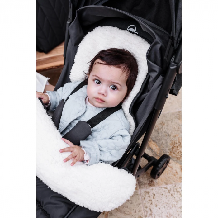 Keep baby cosy on chilly days with the Tinéo Black Footmuff, designed for winter walks from 6 to 18 months. It pairs a soft sherpa lining with a water-repellent outer fabric to help protect against cold, light rain and splashes. For peace of mind, it includes harness slots for 3- or 5-point systems, making it suitable for use in a carrycot or pushchair. Universal fit, machine washable, and finished in a smart black colourway-practical, warm, and timeless.